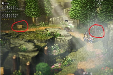 1。当玩家来到野猪林的最左侧,就可以看到宝箱,在打开宝箱之前就会进入战斗。