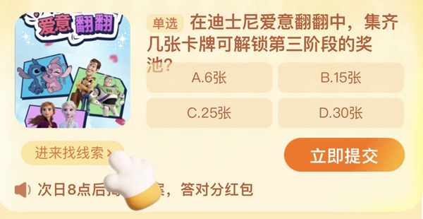 在迪士尼爱意翻翻中集齐几张卡牌解锁第三阶段奖池