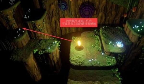 2。我们需要从这里往左走,因为左边的台阶上有蜡烛。然后我们从这条路走到终点。