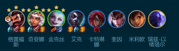 必选棋:格雷夫斯、基亚纳、金克斯、艾克、卡特琳娜、奎因、米里奥、鲁伊斯