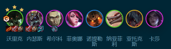 所需棋手:沃里克、内斯特、奇尔科、菲奥娜、鹦鹉螺、纳亚菲利、阿托克斯、卡莎