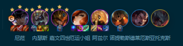 所需棋子:涅槃、内斯特、加文四世、末日小姐、阿泽、鹦鹉螺、德瑞乌斯、亚托克斯