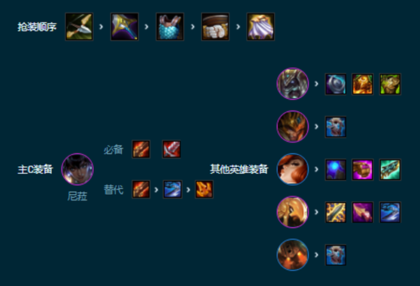 首先优先考虑涅槃的装备,火炮是饮血必备。其他输出装备没有火炮的话,主T虚空带肉,多余的装备可以给阿泽和好运。