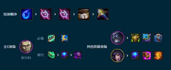 优先考虑强化法的装备,给奇尔科装备科技炮和大天使。剩下的一条建议就是回归蓝衣,小心带肉打c主