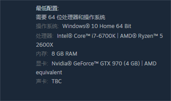 3。最低显卡为NVIDIA gtx970,4g内存或amd同等。