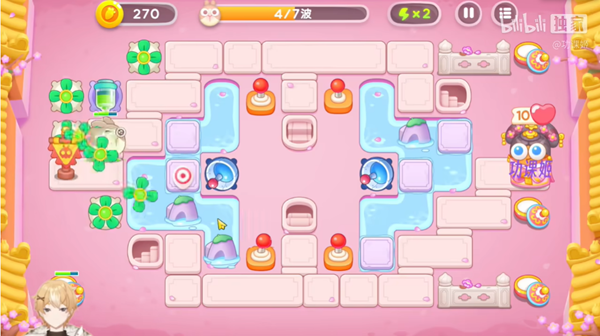 4。怪口周围的五叶草不断升级增强火力,后面的电池是为了清障。
