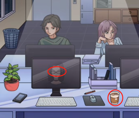 2。之后,点击电脑屏幕,把眼镜给那个人,然后给他咖啡。