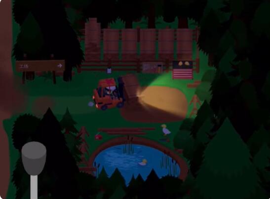 2。来到外面的铲车,把铲车开到放木头的仓库,把里面的木头全部运出去。