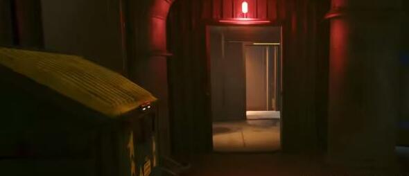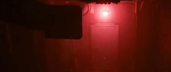 4。下去后,如图找门。这是一扇被红灯照亮的门。