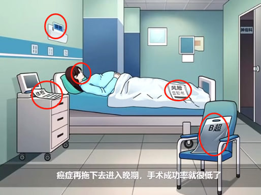 3。下一个场景,可以看到床上的体检报告和风险告知书,椅子上还有一张b超。
