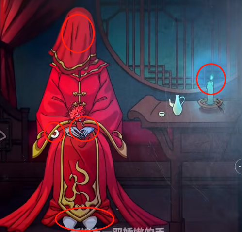 4。进入下一个场景,可以看到蜡烛是绿色的,穿着白色的鞋子,袖子上有纸钱。