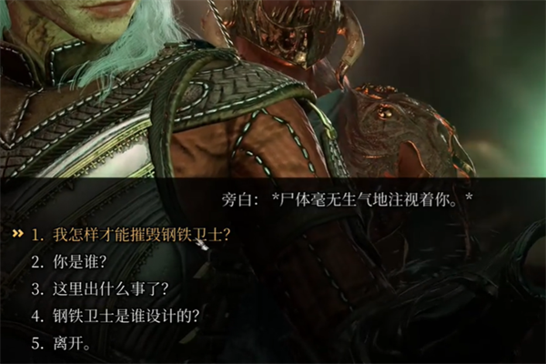 5。我们只需要使用死者对尸体的对话技能,矮人就会告诉玩家如何关闭钢铁守卫。