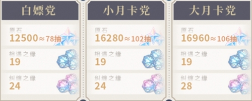 小月卡:相遇的边缘是19+纠缠的边缘是24+16280原石。