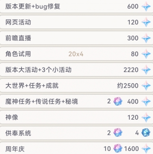 任务获取:魔神任务+芙宁娜与七七传奇任务+其他主动任务,共可获取原石2580颗。
