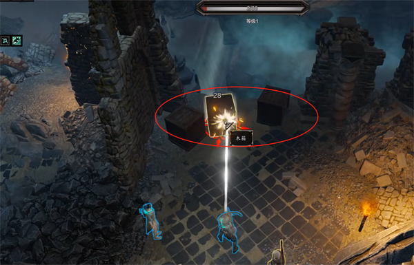 2。我们会来到一个山洞。玩家分解面前的三个盒子后,可以看到一扇门。
