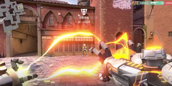 配备冲击波冲击器。【按住射击】可以增加射程,【释放】可以造成震荡,使一条直线内的玩家受到【震荡】。