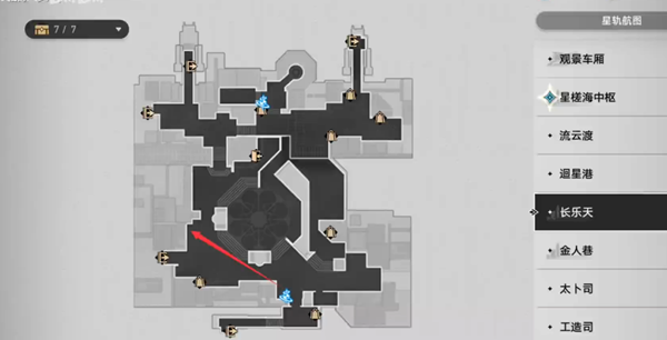 1。首先玩家打开地图,走到长乐天图所示位置,与若月对话,选择第一个选项。