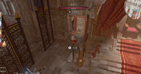 4。进入礼堂后一直往前走,可以看到加冕台旁边有一个暗门。