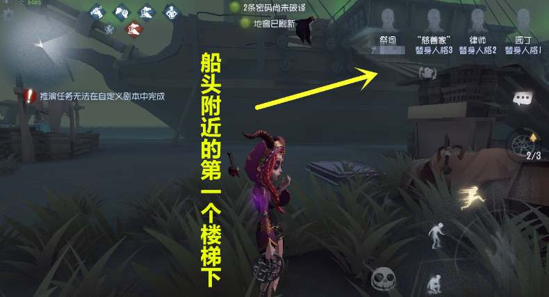 2. 船的楼梯地窖:位于船的楼梯下方和楼梯的支撑柱附近。