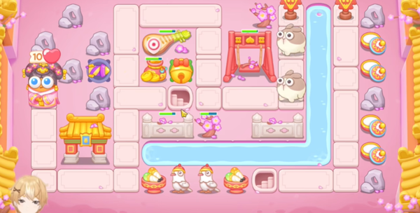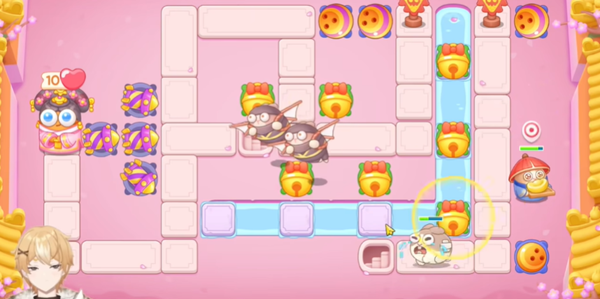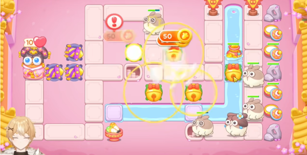 2。前期获得金币继续在地图中央建造另一个铃铛,同时在萝卜周围放置两个火箭。