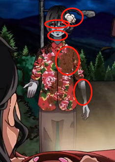 4。观察满是灰尘的脸上和身上的伤口。