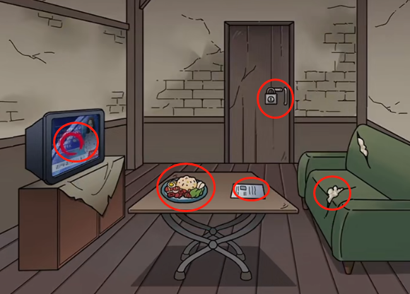 2。之后,我们点击观察沙发上有划痕的锁着的门。