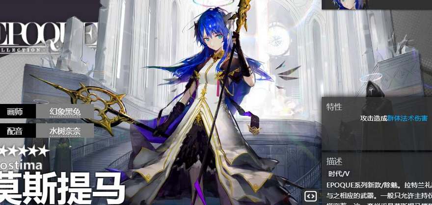 3、莫斯泰玛:六星魔法师干员,特点是大范围群体伤害和减速效果,控场能力强。