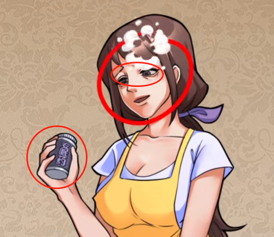 3。进入下一个场景后,可以看到妈妈的脸很疲惫,手里还拿着开心药。