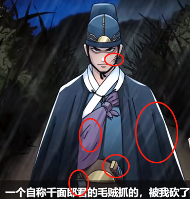 3。点击看,捕头脸上有一道抓痕,身上有包裹和斗篷。