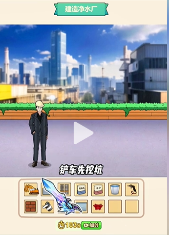 1。首先玩家需要给画面中的人物,戴上头盔,然后用铲车挖坑。