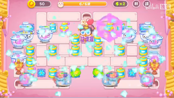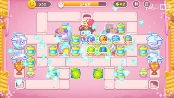 3。围绕萝卜继续建造升级电池,对付后面出现的精英怪。瓶子可以建在下面来清理大的障碍物。