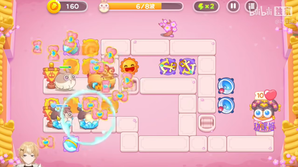 4。清除所有障碍后,在升级炮台中央放两个锚,在怪口放一个冰封炮,让敌人减速。