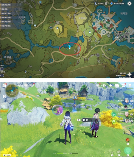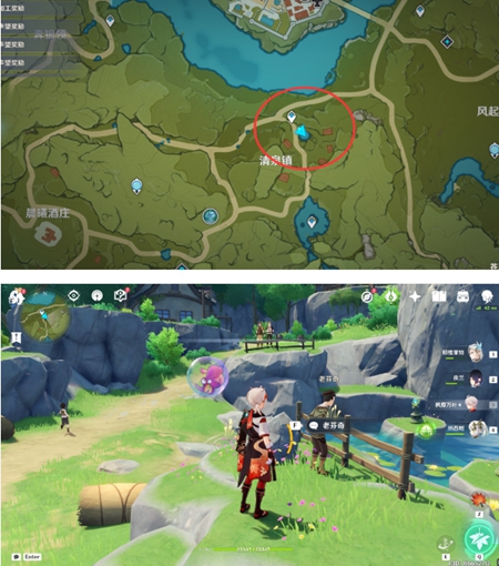 1。玩家打开地图,来到蒙德清泉镇的传送点。当他来到对面的湖时,他可以看到一个交互键,这是第三个蛋。