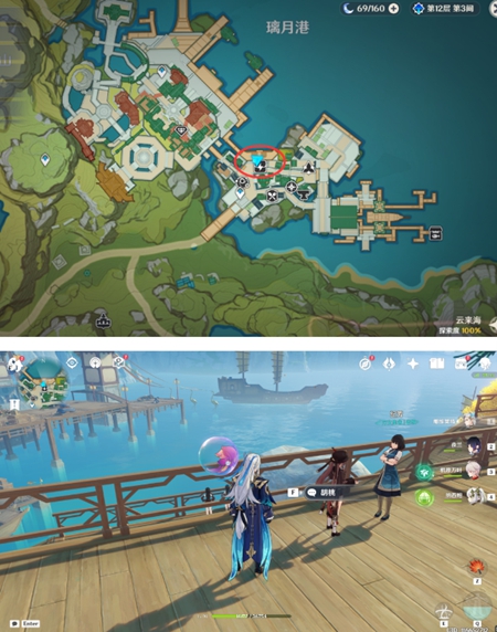 1。玩家打开地图,走到李越港右上方的传送点,如图。