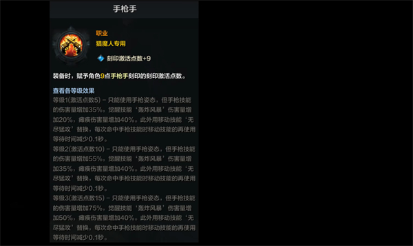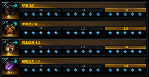 5。刻字可以选择怨念3级,手枪接受3级,肾上腺素3级,精密刀3级,以太充能1级。