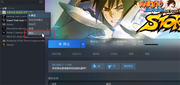 2。然后右键点击下拉栏中的游戏,找到属性按钮进入下一个界面。