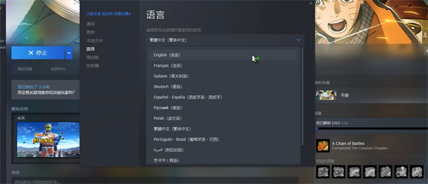 4。之后,你只需要将语言调整为繁体中文。游戏暂时不支持简体中文,不过也差不多。