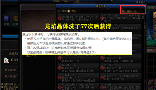 使用龙岩水晶刷新装备入门属性77次后获得。