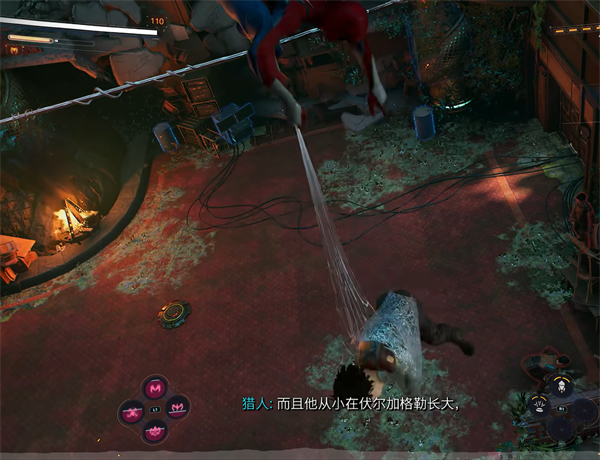 1。第一步,玩家需要先解锁蜘蛛丝,然后走到墙边按下L2+三角键,蜘蛛丝线就会出现,你就可以在上面潜行了。