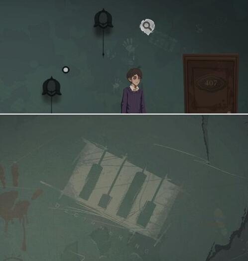 1。走廊墙上的琴键图案对应着走廊四盏灯的高度位置。