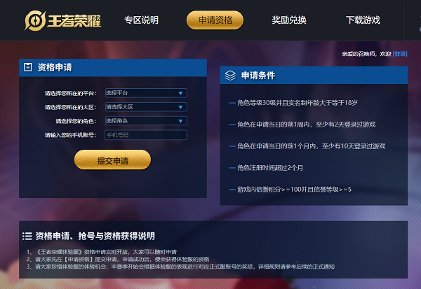 1。首先需要注意的是,玩家必须在体验服务申请资格开放时间内申请。