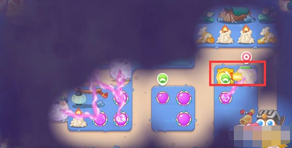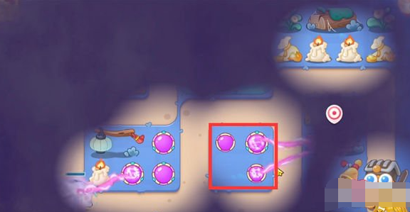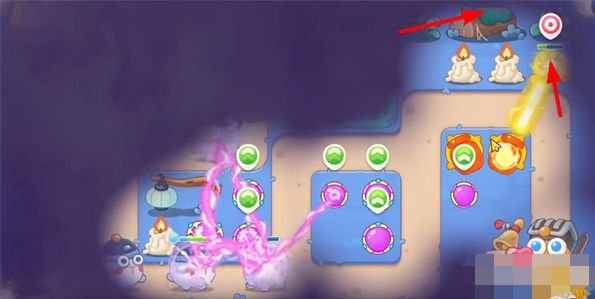 4。玩家砸碎宝箱后可以获得两个火瓶,使用火瓶清除地图右上角的障碍物。