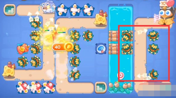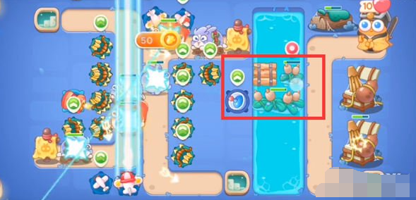 5。然后第六波过后,河中会出现莲花,被碾压后脱落。我们可以在上面建造堡垒,我们还会建造雷达来防止怪物们泄密。
