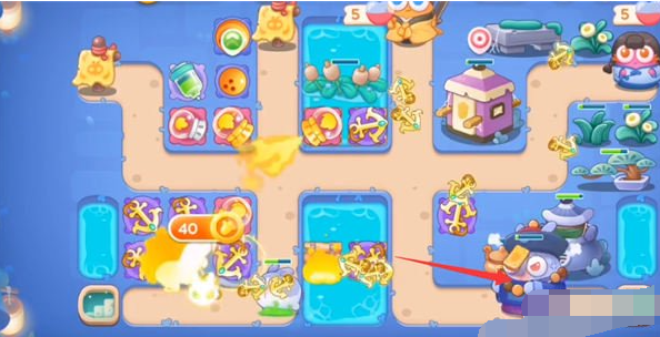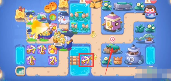 5。然后继续在地图的空白处放置多个锚,不要忘了升级电池提高火力。