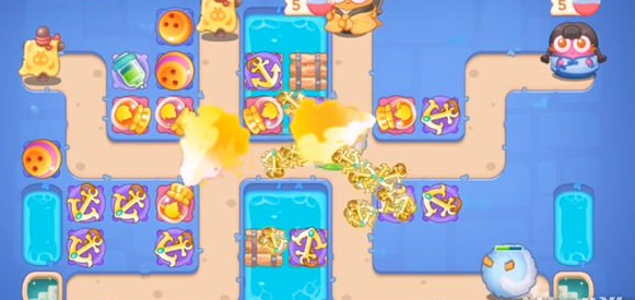 3。继续清除左边的障碍物,然后中间的池塘会出现障碍物。用这个清除右边的障碍。