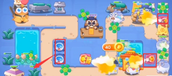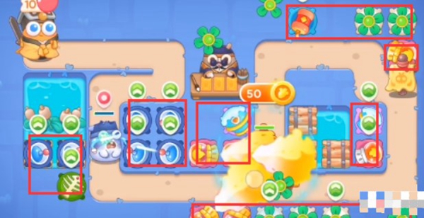 4。接下来,我们需要收集火地图上的符号。会有魔法兔子,中间会建一个雪球塔来控制怪物。