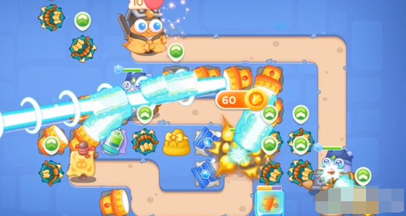 3。在炮台清除障碍后,使用左边的炮台消灭敌人。