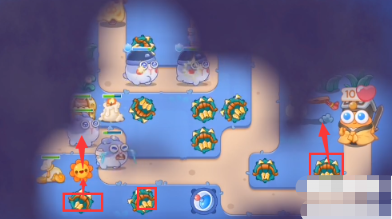 3。在左边的障碍被清除后,在格子上建立多个箭头来清理怪物。