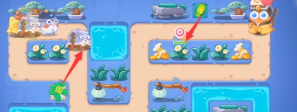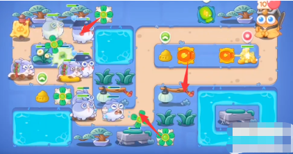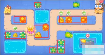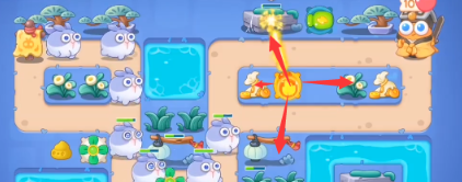 2。先在图中所示的位置造一个风扇,然后继续在地图右上方造一个瓶子炮来清除障碍。