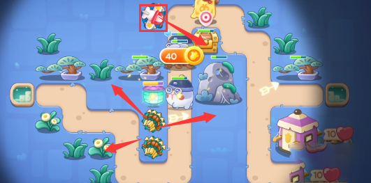 1。对于这个需要视野的关卡,我们最好使用射程攻击的炮台。我们可以在这一层使用平面和多个箭头。